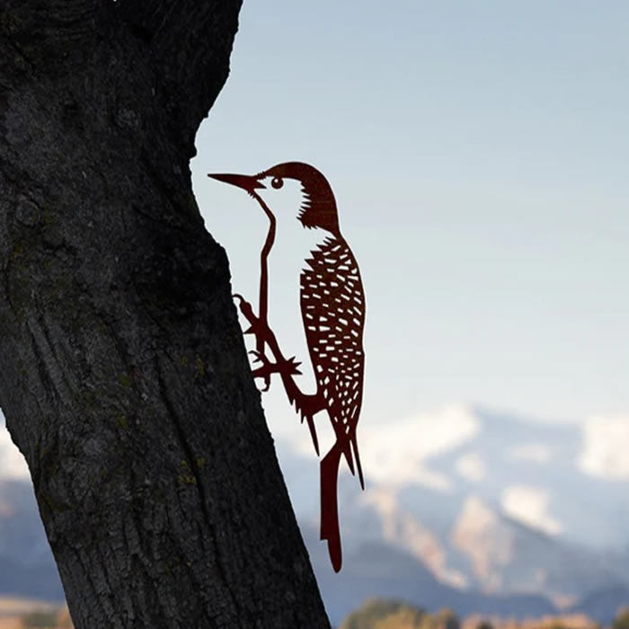 - Over time, the Corten Steel develops a beautiful, even coloring that deepens with age, enhancing the woodpecker's appearance