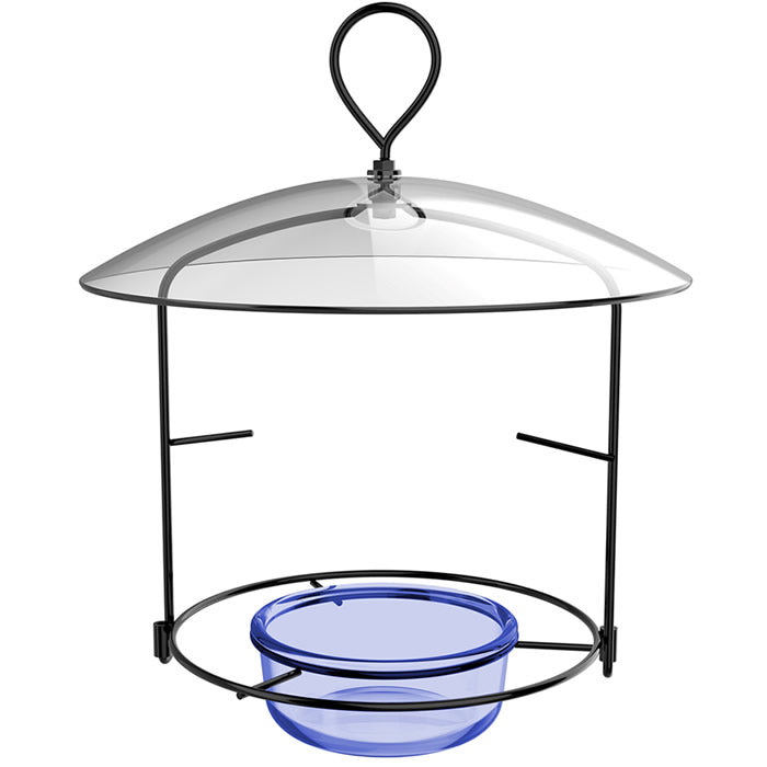 The Bluebird Buffet is a perfect opportunity to provide bluebirds with all of their favorite foods. The wraparound ring allows for optimal perching space for multiple birds. Offer a combination of mealworms, seed, fruit or suet to your birds. Clear plastic weather guard protects all your treats. Measures 9-3/5 x 8-1/4 inches.