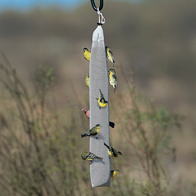 Goldfinches can’t resist feeding from these soft, netted stockings—just like they have for generations. Duncraft has been offering Nyjer® stockings for over 60 years, and this super-sized version is a customer favorite. The generous 22-inch stocking holds up to 3 lbs. of oil-rich Nyjer® seed, providing long-lasting feeding for flocks of hungry finches. Affordable and reusable, these stockings make it easy to keep your goldfinches coming back day after day.