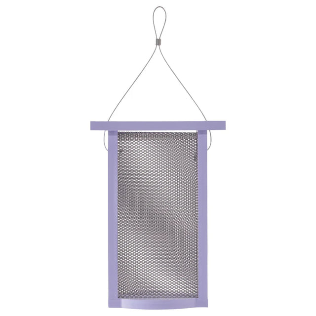 Super easy, maintenance-free durable feeder for finches. Holds up to 1.2 lbs. of seed while finches cling to its screen. This special finch feeder is attractive and ready to fulfill all your finch needs. Made from purple recycled plastic that will complement any backyard. Measures 7-1/2 x 3 x 10-1/2 inches.