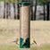 Four independent, magnetic weight-activated perches support feeding songbirds and deter bigger birds. Each perch is set to magnetically release and drop down when a large bird, like starlings or grackles, land.