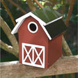 The Barn Style Bird House makes a great addition to any outdoor space. Inside this nesting box are grooves to help the birds easily exit the nest. Entry hole is 1-1/4 inch in diameter and there is a clean out door on the side that's secured with a latch. The Barn Style Bird House measures 7-1/4 x 7 x 8-3/4 inches tall.