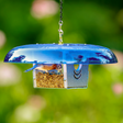 Welcome bluebirds and their fledglings to your yard with this beautifully designed feeder. Designed with their needs in mind, this feeder features a spacious interior and a protective dome to shield birds and food from the elements. The vibrant blue roof provides a splash of color while keeping the focus on the real stars: your visiting bluebirds!